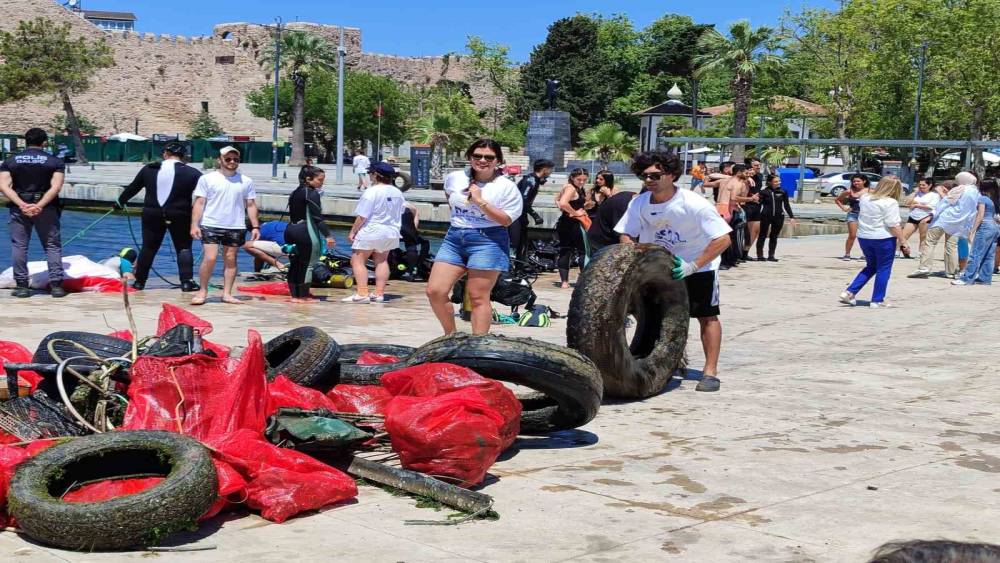 Proje kapsamında gönüllü gençlerle birlikte hem sahil şeritlerinden hem de deniz dibinden çöp toplama çalışmaları yürüttüklerini belirten Kuru, "Biz bu çöpleri hem sahillerimizden hem de deniz dibinden topluyoruz" ifadelerini kullandı.