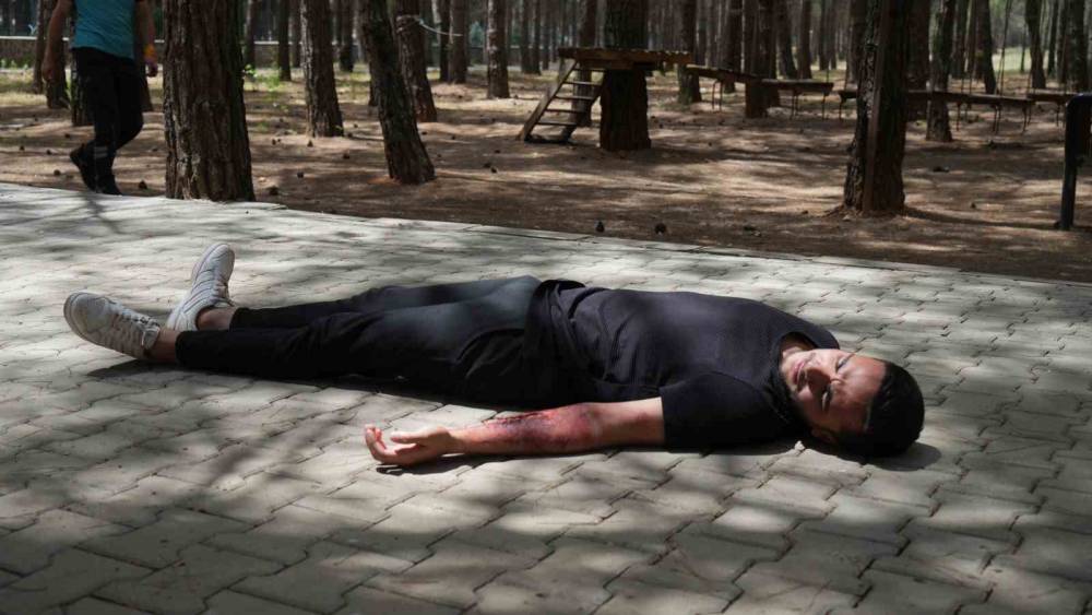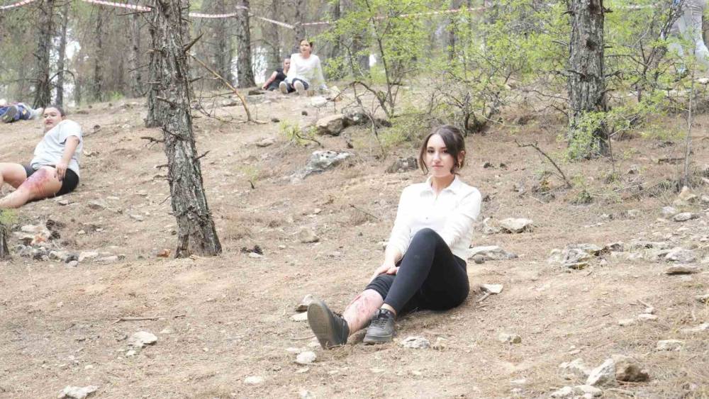 Ulusal Medikal Kurtarma Ekibi’ne yeni katılan gönüllüler için ormanlık alanda yaralı kurtarma tatbikatı düzenlendi. Yapılan makyajla gerçeğe yakın yaralı görüntüsü oluşturulan temsili yaralılara müdahale eden ekiplerin müdahale süresi ve davranışlarında sergiledikleri performans dikkat çekti. Terör saldırısı ve kimyasal saldırı olmak üzere iki etaptan oluşan tatbikatta her detay düşünülürken tatbikatın her aşaması nefes kesen görüntülere sahne oldu. Makyajla gerçeğe yakın yaralı görünümüne kavuşturulan yaralılara müdahale eden ekipler tatbikatı başarıyla tamamladı.