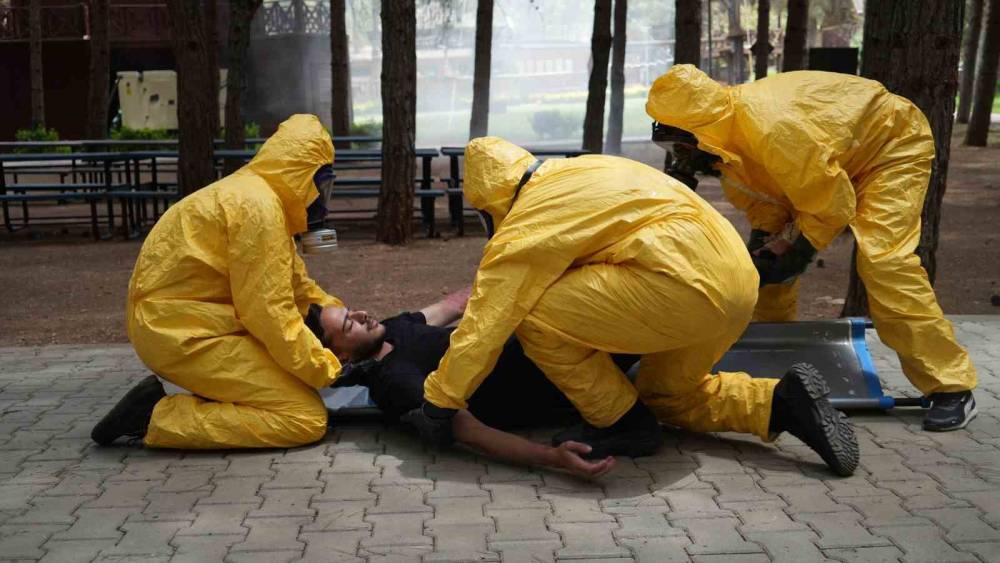 Gaziantep’te UMKE’ye dahil olabilmek için eğitimden geçen sağlıkçıların katıldıkları tatbikat film sahnelerini aratmadı.