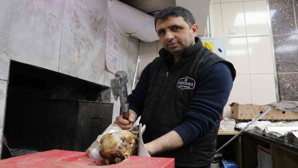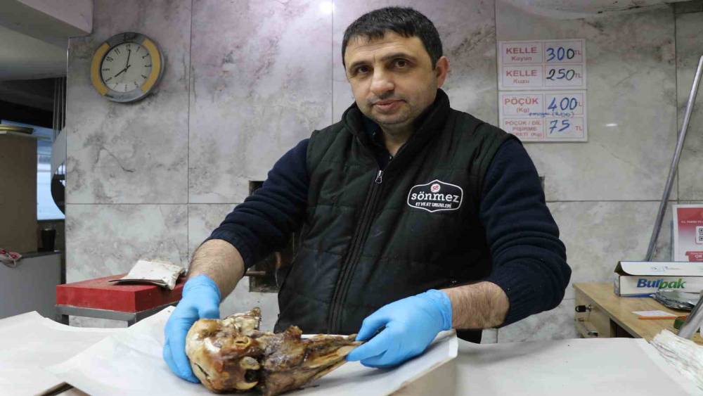 Sivas’ın kış sofralarının vazgeçilmez lezzeti kelle, 16 saatlik zahmetli hazırlık süreci ve taş fırında pişirme tekniğiyle hem yöre halkından hem de turistlerden yoğun ilgi görüyor. Enerji ve şifa kaynağı olarak bilinen doğal kelle, 300 liradan satışa sunuluyor.
