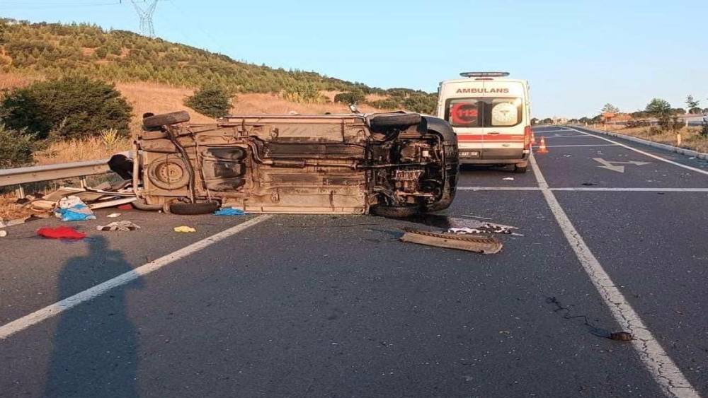 Uşak’ta hafif ticari aracın refüje çarpıp devrilmesi sonucu 1 kişi öldü 1’i bebek 4 kişi yaralandı.