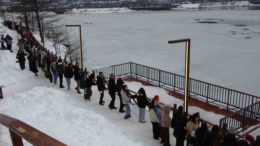 Trabzon’un dünyaca ünlü turizm merkezi Uzungöl’de bu yıl ilk kez düzenlenen Kış Festivali’nde binlerce kişinin katılımıyla gölün çevresini saran horon halkası oluşturuldu.Festival alanında kurulan sahnede yöresel sanatçılar eşliğinde horon halkaları oluşturulurken, vatandaşlar karla kaplı doğada doyasıya eğlendi. Binlerce kişinin katıldığı etkinliklerde Uzungöl renkli görüntülere sahne oldu.Festival kapsamında hazırlanan 250 metre uzunluğundaki amatör kayak alanı, özellikle gençlerin ve çocukların ilgi odağı oldu. Ziyaretçiler, göl manzarası eşliğinde kayak yaparak kışın keyfini çıkardı.Etkinlikler kapsamında planlanan rekor horon halkası denemesi de gerçekleştirildi. Çok sayıda vatandaş, konser alanından başlayarak göl çevresinde uzun kuyruklar oluşturarak horon oynadı. Ortaya çıkan görüntüler dikkat çekti.Öte yandan Trabzon İl Jandarma Komutanlığı Su Altı Arama Kurtarma (JAK) Timi göl içerisinde kısa bir gösteri yaptı.