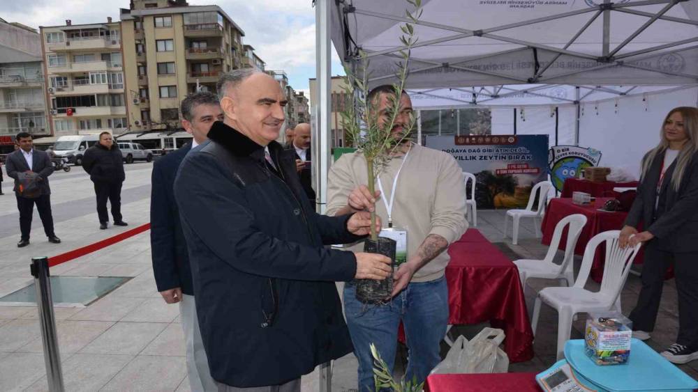 Manisa Büyükşehir Belediyesi tarafından kurulan atık pil toplama standını da ziyaret eden Vali Özkan, biriktirdiği 1 kilogram atık pili teslim ederek kampanya kapsamında zeytin fidanı aldı.