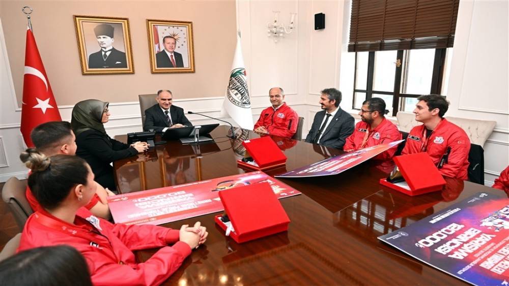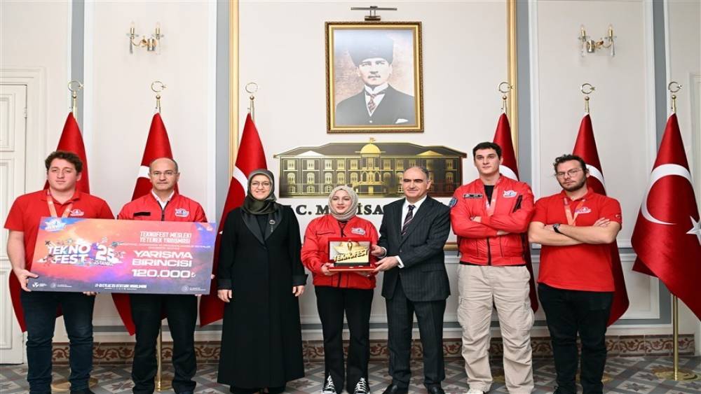 Manisa Valisi Vahdettin Özkan makamında ağırladığı TEKNOFEST 2025’te ulusal dereceler elde eden Manisa Celal Bayar Üniversitesi (MCBÜ) öğrencilerini tebrik ederek böylesi başarıların geleceğe umut verdiğini söyledi.