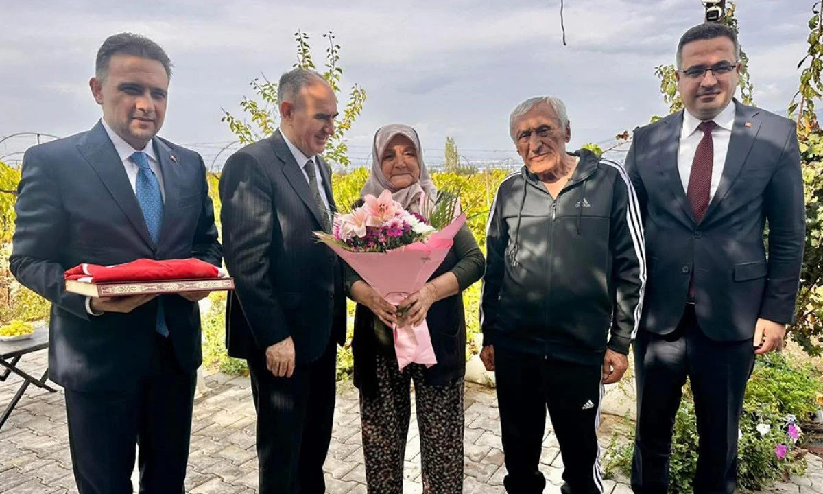 Ziyarette şehit ailesiyle bir süre sohbet eden heyet, şehit ailesine Türk bayrağı, Kur’an-ı Kerim ve çiçek takdim etti.