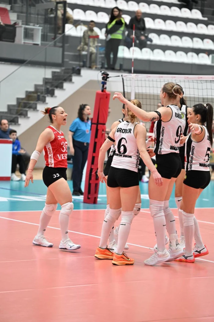 Vestel Manisa Büyükşehir Belediyespor Kulübü Kadın Voleybol Takımı, Arabica Coffee House Kadınlar 1. Ligi play-off yarı final etabındaki ilk maçında Denizli BBSK’yı 3-0 mağlup etti.