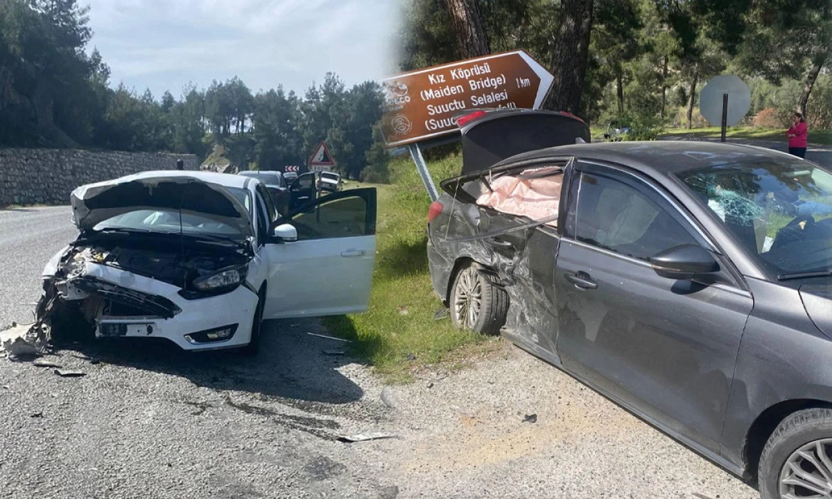 VİRAJI ALAMAYAN OTOMOBİLLER ÇARPIŞTI