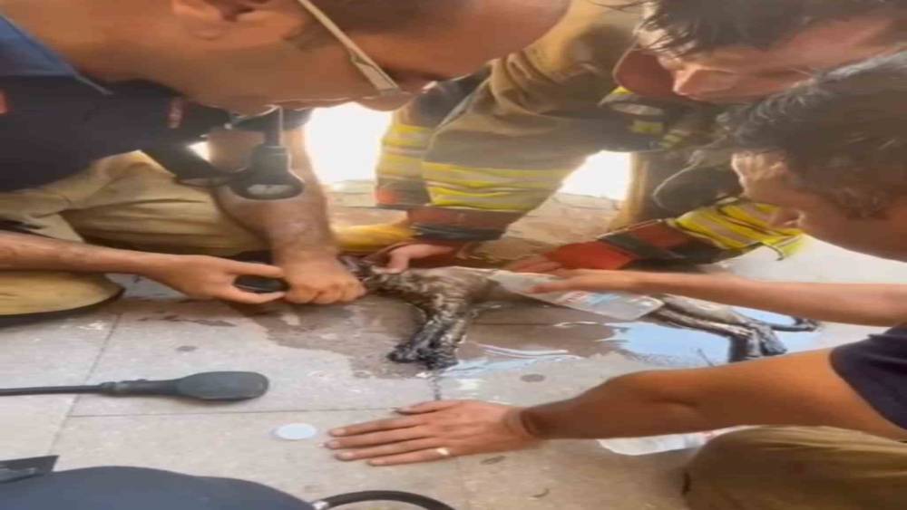 Yangından kurtarılan kediye itfaiye ekiplerinden kalp masajı