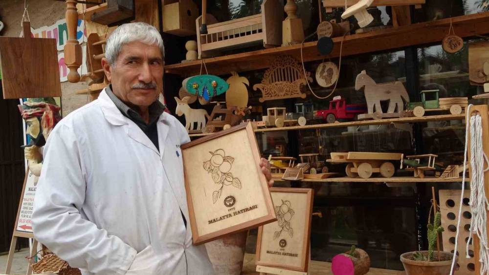 Mutfak eşyasından ev aksesuarlarına, oyuncaktan özel tasarıma 100’ün üzerinde çeşitle yarım asırdır kurumuş ağaç parçalarına şekil veren Mikail Fırat, sanatını ilk günkü heyecanla devam ettiriyor.Sanat Sokağı’nda "Doğal Ahşap Mikail Usta" atölyesinde günün ilk talaşlı çayını yudumlayarak işe koyulan Mikail Fırat, 13 yaşından beri ahşap sanatıyla uğraşıyor.62 yaşında olan Fırat, hayatını tam 50 yıldır kurumuş ağaçlara adadığını ve bundan keyif aldığını söylüyor. Özellikle çocuklar için çeşitli çalışmalar yapan Fırat, tüm ziyaretçilerin takdirini topluyor.Çocukların doğayla ilk temasının ahşapla olması gerektiğini belirten Fırat, bunun için geniş yelpazede ürünler yapıyor. Zaman zaman atölyesinde çocuklara basit çalışmalarda yaptıran Fırat, çocukların fark oluşturmakta sınır tanımadığını belirtiyor.Gönül atölyesine adanan yarım asırAhşabın dokusunun, talaşın kokusunun hayatında bir iletişim aracı olarak gören Fırat, dükkanından ‘gönül atölyesi’ olarak bahsediyor. Gönül atölyesine 50 yıllık bir ömrü adayan Fırat, bunun artık bir yaşam şekli olduğunu vurguluyor.Fırat, "Şu an gönül bahçesinin önündeyiz. İyi İnsanın, altının ve antikanın değeri hiçbir zaman tartışılmaz. Günlük buraya 3 kişi geliyor. Biri bize sanat gözüyle, biri odun gözüyle bakıyor. Diğeri de hiç bakmadan geçiyor. 1963 Malatya doğumluyum. Bu yıl 50’nci yılım" dedi.Dönemin şartlarından dolayı okul hayatına devem edemediğini belirten Fırat, "Beşinci sınıfa kadar okuyabildim. Çocukluk dönemimizde hayvancılık, çiftçilik yaptığımız için okula devamsızlığımız oldu. Dördüncü sınıfa kadar okuyabildim. Bu yüzden öğretmenlere biraz kırgınlığım da var. Şu an tüm imkânlara sahip olup da okumayanlara da üzülüyorum" şeklinde konuştu.Gönül atölyesinde ahşap sevgini ön plana çıkarmak istediğini vurgulayan Fırat, "Ahşap sevgisini ön plana çıkarmak istiyorum. Bu da 3-5 kişiyle olmuyor. Plastiği kenara koyup ahşap oyuncakları ön plana çıkarsak daha güzel olacak" diye konuştu.