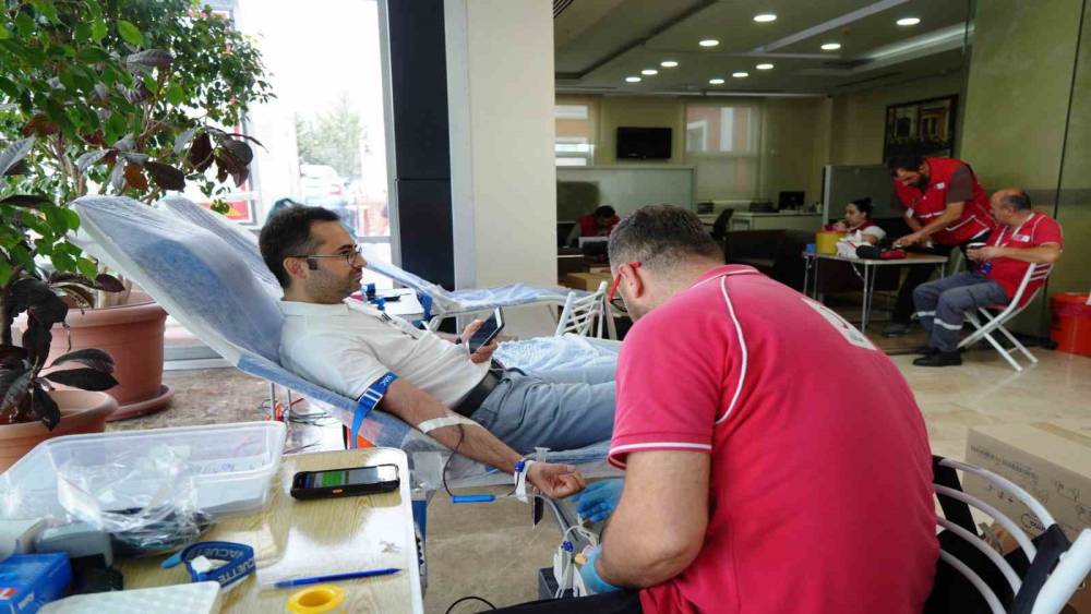 Samsun’da hastane çalışanları ve hasta yakınları, yaz aylarına düşen bağış sayılarına destek olmak amacıyla kan bağışında bulundu.