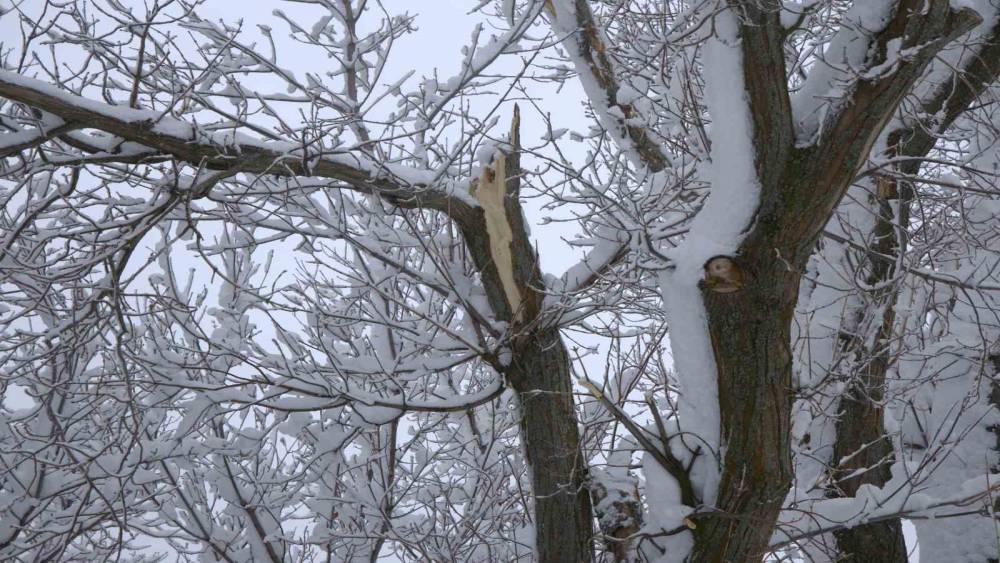 Yoğun kar yağışı Harput’ta çok sayıda ağacın dallarını kırdı