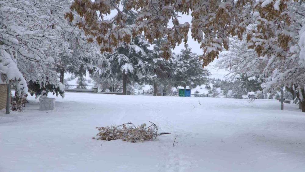 Elazığ’da etkisini artıran yoğun kar yağışı sonrası Harput Mahallesi’nde karın ağırlığına dayanamayan çok sayıda ağacın dalları ve gövdeleri kırıldı.