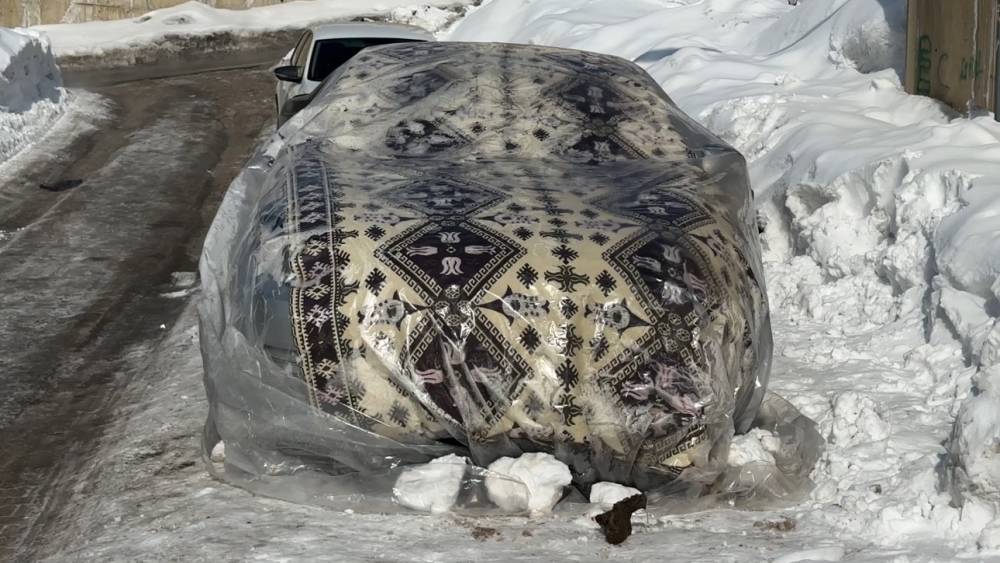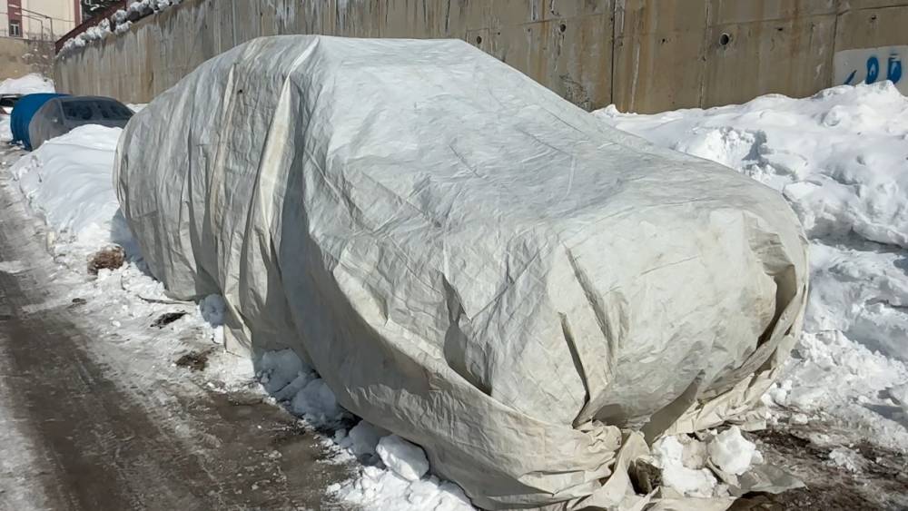 Aracını korumaya çalışan ilçe sakini, bölgedeki çetin şartları şu sözlerle ifade etti: