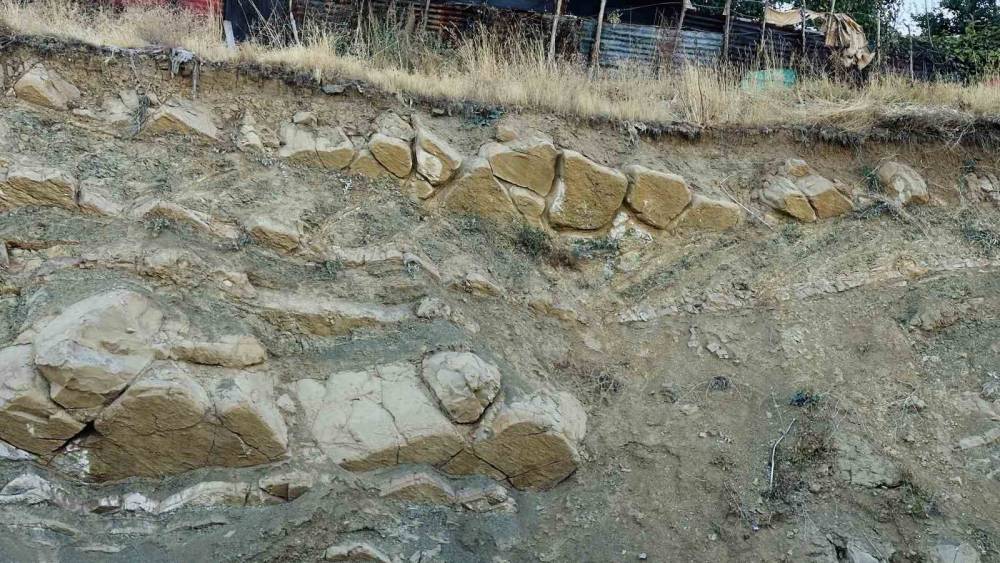Hakkari’nin Yüksekova ilçesinde yürütülen kazı çalışmaları ve ardından etkili olan yağışlardan dolayı ortaya gizemli bir buluntu çıktı. Esnaf, bir sıra halinde dizilmiş taşlardan oluşan kalıntının tarihi duvar olabileceği şüphesiyle incelenmesini istedi.