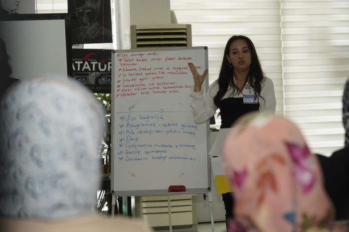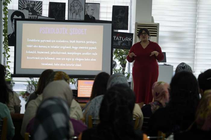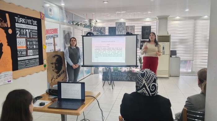 25 Kasım Kadına Yönelik Şiddete Karşı Uluslararası Mücadele Günü kapsamında Yunusemre Belediyesi, Yunusemre Kent Konseyi ve Manisa Barosu işbirliği ile Yeni Mahalle Kadın Dayanışma ve Eğitim Merkezinde eğitim gören kursiyerlere şiddet karşısında ne yapabilecekleri anlatıldı.