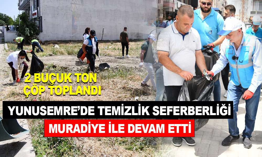 Yunusemre Belediyesi’nin başlattığı temizlik seferberliği Muradiye Mahallesi ile devam etti. Yunusemre Belediye Başkanı Semih Balaban’ın da katıldığı etkinlikte 2 buçuk ton çöp toplandı.