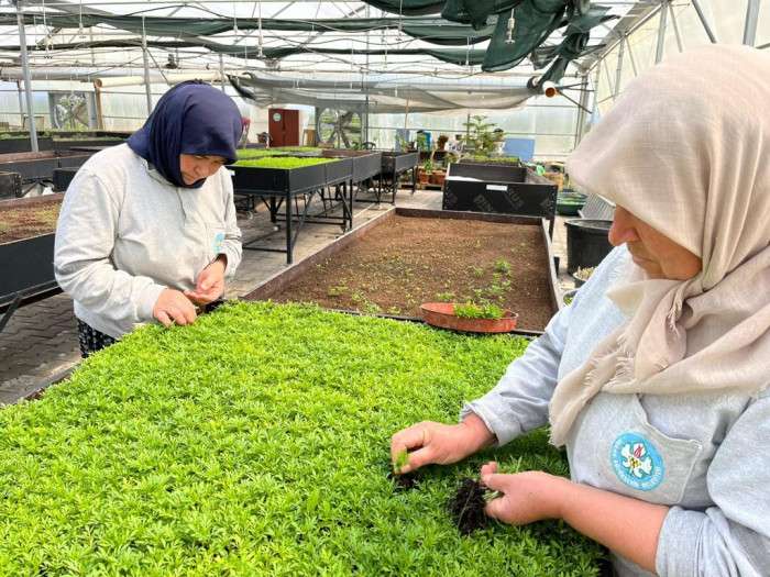 Yüz binlerce çiçek ve bitki, büyükşehir serasında üretildi