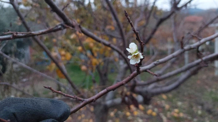 ZEMHERİDE ÇİÇEK AÇAN ERİK AĞACI ŞAŞIRTTI