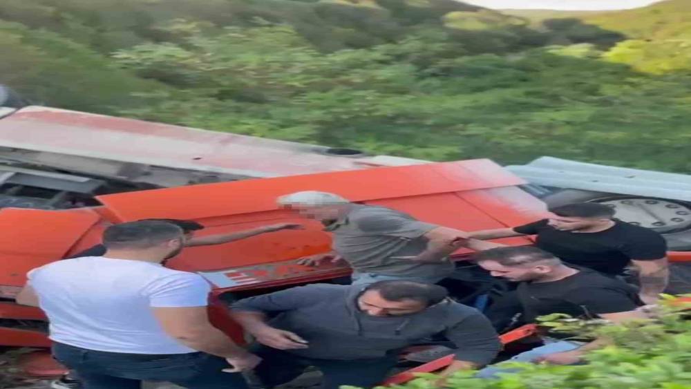 Edinilen bilgiye göre, S.A. idaresindeki 14 ABE 214 plakalı tır, iddiaya göre yola dökülen mazot nedeniyle kayarak yol kenarındaki refüje çarpıp şarampole devrildi. Kazayı gören diğer sürücüler ve mesaiden çıkan madenciler, araçta sıkışan sürücüyü kurtardı. Olay yerine sevk edilen sağlık ekiplerinin ilk müdahalesinin ardından yaralı sürücü hastaneye kaldırılarak tedavi altına alındı.